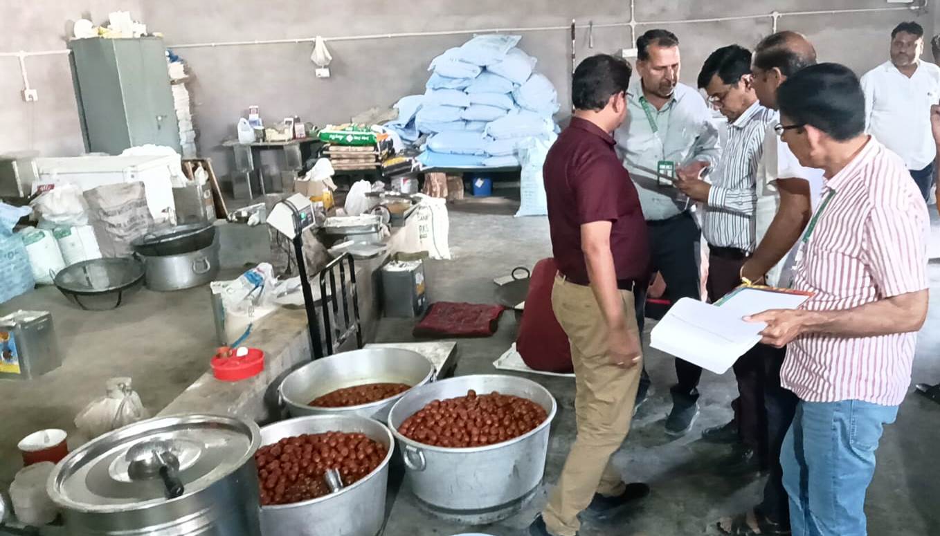बीकानेर राज्य सरकार के फ्लैगशिप कार्यक्रम ‘शुद्ध आहार-मिलावट पर वार’ के तहत स्वास्थ्य विभाग द्वारा मुख्य चिकित्सा एवं स्वास्थ्य अधिकारी डॉ. पुखराज साध के नेतृत्व में नापासर में नमूनीकरण एवं निरीक्षण की कार्रवाई की गई है। मुख्य चिकित्सा एवं स्वास्थ्य अधिकारी डॉ. पुखराज साध ने बताया कि जिला कलेक्टर श्रीमती नम्रता वृष्णि के निर्देशानुसार खाद्य सुरक्षा दल द्वारा नापासर के रामदेव मंदिर के पास स्थित जाट मोहल्ला में मैसर्स अजय ओम फूड प्रोडक्ट पर निरीक्षण एवं नमूनीकरण की कार्रवाई की गई। संस्थान की  निर्माण ईकाई बिना फूड लाइसेंस के संचालित की जा रही थी। फूड हैंडलर्स का मेडिकल रिकार्ड तथा पेस्ट कंट्रोल का रिकॉर्ड नहीं था। पानी की जांच रिपोर्ट उपलब्ध नहीं थी। बेबी ब्रांड केसर तथा खाद्य कलर अवधि पार काम में लिए जा रहे थे, दीवारों पर जाले लगे हुए थे। फिनी लगभग 3 किलो जिसमें मरी हुई मक्खियां गिरी हुई थी को मौके पर ही नष्ट करवाया गया। पाई गई कमियों को सुधारने के लिए इंप्रूवमेंट नोटिस दिया गया तथा निर्माण इकाई को सीज किया गया। इस कार्रवाई में मावा, गुलाब जामुन, दूध तथा घी के कुल 4 नमूने लिए गए। लिए गए नमूनों को जन स्वास्थ्य प्रयोगशाला भिजवाया जाएगा। जांच रिपोर्ट प्राप्त होने पर नियमनुसार कार्रवाई की जाएगी। इस कार्रवाई में खाद्य सुरक्षा अधिकारी श्रवण कुमार वर्मा, भानु प्रताप सिंह तथा राकेश कुमार गोदारा शामिल रहे।