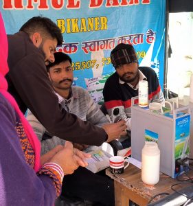 बीकानेर। राजस्थान कोऑपरेटिव डेयरी फेडरेशन लि.(आरसीडीएफ) जयपुर के निर्देशानुसार उरमूल डेयरी बीकानेर के विपणन व गुण नियंत्रण विभाग के संयुक्त तत्वावधान में दूध का दूध और पानी का पानी-शुद्ध के लिए युद्ध अभियान में दूध जांच शिविर सुजानदेसर स्थित सरस बूथ संख्या-1231, धोबी तलाई, रानीबाजार पर आयोजित हुआ। अभियान प्रभारी शुभम गुलाटी ने बताया कि कुल 37 सैम्पल आए, जिसमें से 31 सैम्पल फैल और केवल 06 सैम्पल पास हुए। दो-दो सैम्पल ऐसे भी पाए गए जिनमें स्टार्च और सुक्रोज की मिलावट पाई गई,तथा एक सैम्पल जिसमें स्टार्च, सुक्रोज, साल्ट, ग्लूकोज सभी की मिलावट पाई गई। बूथ संचालक गौरीशंकर व असलम ने भी जांच शिविर में सहयोग किया।