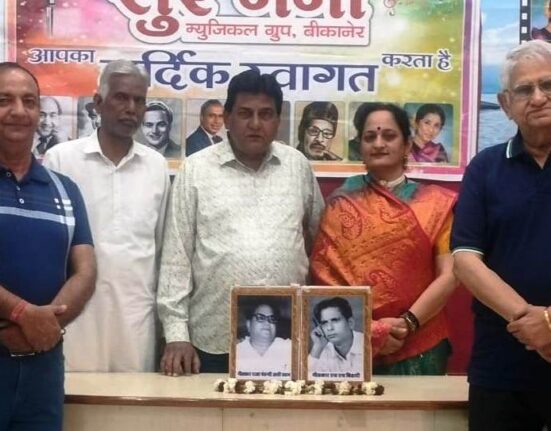 ‘एक शाम एस.एच. बिहारी व राजा मेहदी अली खान के नाम’ कार्यक्रम आयोजित बीकानेर। सुर गंगा म्यूजिकल ग्रुप द्वारा महाराजा नरेंद्रसिंह ऑडिटोरियम में