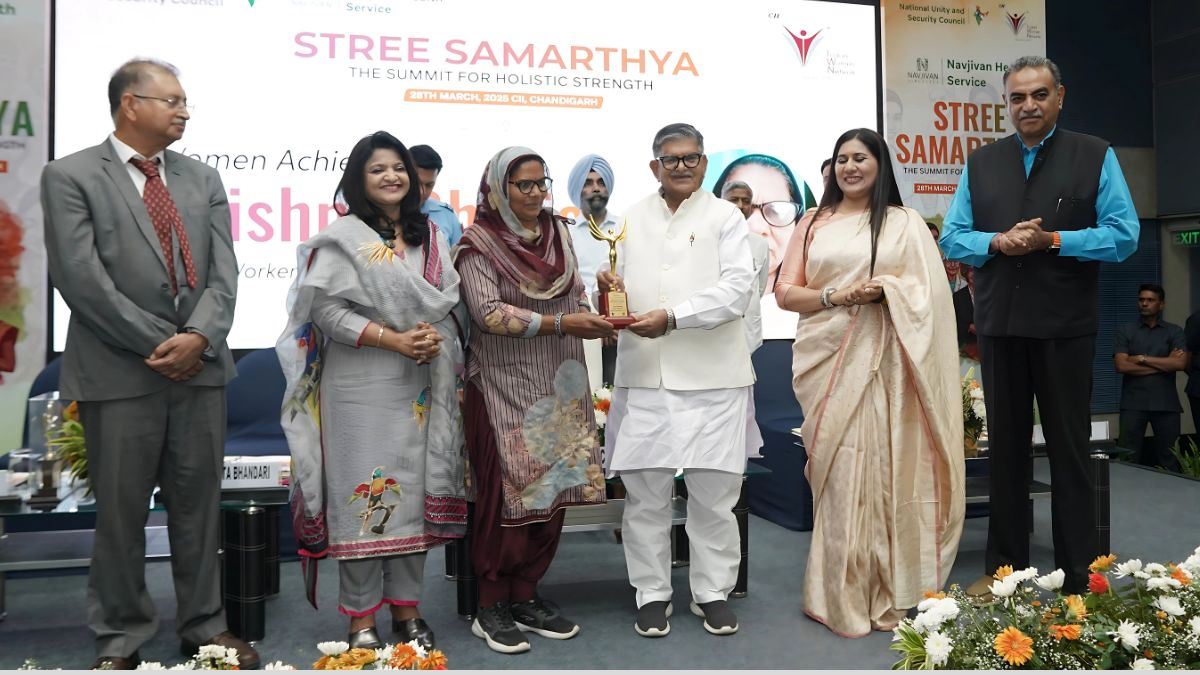 बीकानेर। बीकानेर जिले के छतरगढ़ की आंगनबाड़ी कार्यकर्ता कृष्णा भाटिया को चंडीगढ़ में ’स्त्री सामर्थ्य कार्यक्रम के तहत महिला सशक्तिकरण के लिए सम्मान किया गया। संस्थान द्वारा काम करने वाली महिलाओं का महिला सशक्तिकरण के क्षेत्र में काम करने वाली महिलाओं का सम्मान किया जाता है। यह कार्यक्रम सीईओ नवजीवन ग्रुप एंड चेयरपर्सन नेशनल यूनिटी एंड सिक्योरिटी काउंसिल डॉ.मोनिका बी सूद द्वारा आयोजित किया गया। कार्यक्रम के मुख्य अतिथि पंजाब के राज्यपाल गुलाबचंद कटारिया उपस्थित रहे। जिन्होंने महिला सशक्तिकरण के क्षेत्र में काम करने वाली महिलाओं को सम्मानित कर उन्हें मोटिवेट किया। कार्यक्रम में देशभर के अलग-अलग क्षेत्र में महिला सशक्तिकरण की दिशा में काम करने वाली महिलाओं का सम्मान किया गया। जिसमें बीकानेर जिले के छत्तरगढ़ निवासी कृष्णा भाटिया को भी डॉ.मोनिका बी सूद व राज्यपाल गुलाब चंद कटारिया ने सम्मान पत्र दिया। भाटिया पिछले लंबे समय से बीकानेर जिले के ग्रामीण क्षेत्र में महिला सशक्तिकरण के क्षेत्र में निस्वार्थ भाव से काम कर रही हैं।