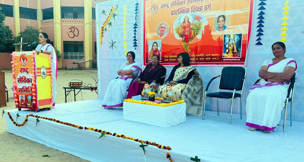 बीकानेर। गंगाशहर में राष्ट्र सेविका समिति का सात दिवसीय शिविर प्रारंभिक शिक्षा वर्ग का सम्पन्न हुआ। मुख्य अतिथि कृष्णा आचार्य ने कहा कि राष्ट्र सेविका समिति विश्व का सबसे बड़ा महिलाओं का संगठन है ऐसे वर्गों से बहनों के मन में राष्ट्र के प्रति समर्पण की भावना, नेतृत्व क्षमता व कर्तव्य बोध का गुण विकसित