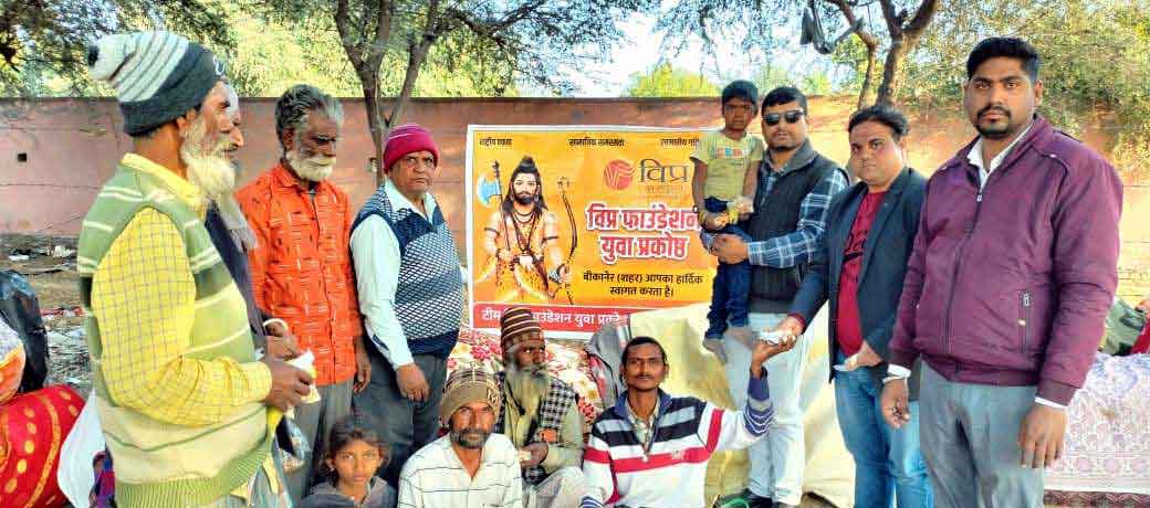 बीकानेर। मकर संक्रांति पर सेवा, सहयोग और सद्भावना की भावना को साकार करते हुए विप्र फाउंडेशन युवा प्रकोष्ठ द्वारा झुग्गी-झोपड़ियों में रहने वाले जरूरतमंद परिवारों के बच्चों को सामग्री वितरित की गई। कार्य का मुख्य उद्देश्य समाज के वंचित वर्ग के बच्चों तक पर्व की खुशियां पहुंचाना है। पंकज पीपलवा ने बताया कि सामाजिक एवं सेवा कार्य निरंतर जारी रहेंगे। इस मौके पर युवराज व्यास, उपाध्यक्ष दिनेश व्यास, सचिव गोपाल पुरोहित, केशव सांखी,अश्विनी कुमार शर्मा, नंदकिशोर मारु सहित अनेक विप्रजन उपस्थित थे।