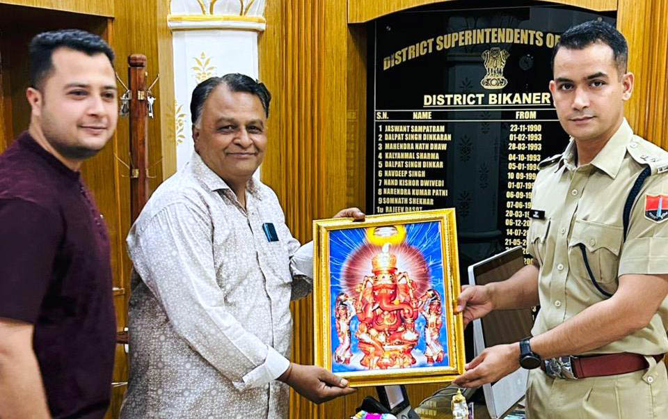बीकानेर। बीकानेर के नवनियुक्त पुलिस अधीक्षक मुदुल कच्छावा का नरसिंग दास जीवणी देवी सेवग चौरिटेबल ट्रस्ट एवं पुजारी समाज के सदस्यों ने शिष्टाचार भेंट कर अभिनंदन किया। ट्रस्ट के संयोजक मनीष भोजक ने बताया कि इस अवसर पर ट्रस्ट के अध्यक्ष शंकर सेवग ने कच्छावा को भगवान श्रीगणेशजी की तस्वीर भेंट कर स्वागत किया। वहीं तरुण भोजक ने दुपट्टा, मनीष भोजक ने पुष्पगुच्छ तथा ऋतुध्वज शर्मा ने श्रीफल भेंट कर उनका सम्मान किया। इस अवसर पर पुलिस अधीक्षक कच्छावा ने कहा कि पुलिस प्रशासन आम नागरिकों को अपराध से भयमुक्त वातावरण देने के लिए सदैव प्रतिबद्ध है। उन्होंने विशेष रूप से युवा वर्ग को नशे के चंगुल से दूर रखने के लिए जागरूकता और सख्ती दोनों स्तरों पर कार्य करने की बात कही। साथ ही समाज के सहयोग से अपराध नियंत्रण को और प्रभावी बनाने पर जोर दिया।