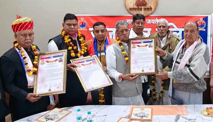 बीकानेर। जिले के 4 पुलिसकर्मियों की सेवानिवृति पर राजस्थान सेवानिवृत पुलिस कल्याण संस्थान द्वारा सम्मान समारोह पुलिस संभागार में आयोजित किया गया। इस अवसर पर पुलिस विभाग से सेवानिवृत होने वाले पुलिस अधिकारी भोमाराम, रामेश्वर लाल, चन्द्रसिंह एवं इन्दजीत ंिसंह का संस्थान द्वारा अभिनंदन किया गया। अध्यक्षता संस्थान के जिलाध्यक्ष मनोहर सिंह लूणा ने करते हुए कहा कि पुलिस विभाग से सेवानिवृति केवल एक सरकारी प्रक्रिया है, लेकिन समाज के प्रति सेवा का भाव कभी समाप्त नही होता है। इस मौके पर सुखदेव व्यास जगमालराम बिस्सु आदि ने अपने विचार रखें। समारोह मे हरिराम गहलोत, श्रीकृष्ण मीणा, ओम प्रकाश चौधरी, ओमप्रकाश जोशी, महेन्द्र तिवारी, चंवर सिंह राठौड, सवाई सिंह, अनूपसिंह, महबूब अली, मोतीराम, राधाकिशन, रामगोपाल राजपुरोहित, भंवर सिंह राठौड आदि उपस्थित थे।