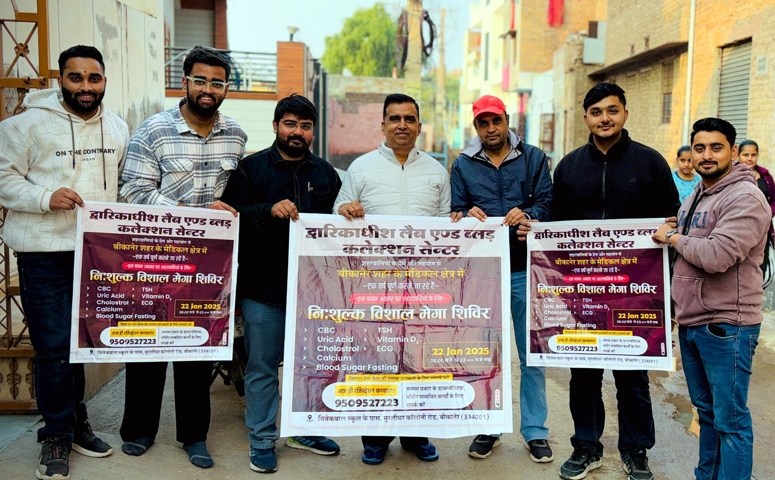 बीकानेर। शहर के मुरलीधर कॉलोनी रोड़ पर विवेक बाल मंदिर स्कूल के पास स्थित द्वारकाधीश लैब एंड ब्लड कलेक्शन सेंटर 22 जनवरी को अपना एक वर्ष पूरा करने जा रहा है। इसको यादगार बनाने के लिये सेन्टर की ओर से निःशुल्क जांच शिविर का आयोजन किया गया है। जिसके पोस्टर का विमोचन सूचना एवं जनसंपर्क विभाग के उपनिदेशक हरिशंकर आचार्य,समाजसेवी दानवीर सिंह भाटी,नयाशहर थानाधिकारी विक्रम तिवाड़ी,पूर्व सीएमएचओ डॉ मो अबरार पंवार,डॉ राहुल हर्ष,बीकानेर प्रेस क्लब के पूर्व अध्यक्ष जयनारायण बिस्सा,डॉ शशांक व्यास,डॉ रमाकांत बिस्सा,महेन्द्र व्यास,युवा क्रिकेटर राजकुमार जोशी ने किया। शिविर के मीडिया प्रभारी हर्षित बिस्सा ने बताया कि सुबह 8 बजे से दोपहर 3 बजे तक सीबीसी,कोलेस्ट्रॉल एवं ब्लड शुगर फास्टिंग सहित कुल 8 प्रकार की निशुल्क जांच की जाएगी। जिसका पंजीयन सेन्टर पर करवा सकते है। उन्होंने बताया कि शिविर में पत्रकारों के लिये विशेष व्यवस्था की गई है। इस मौके पर राहुल व्यास, प्रशांत व्यास, गौरव जोशी, हर्षित बिस्सा भी मौजूद रहे।