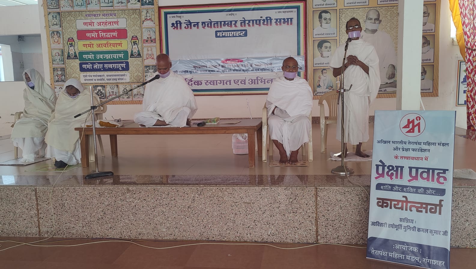 बीकानेर। तेरापंथ महिला मंडल गंगाशहर द्वारा आयोजित प्रेक्षा प्रवाह -शांति और शक्ति की ओर के अंतर्गत कायोत्सर्ग कार्यशाला में अपने विचार रखते हुए उग्र विहारी तपोमूर्ति मुनि श्री कमल कुमार जी ने कहा कि कायोत्सर्ग का अर्थ है शरीर के प्रति ममत्व को छोड़ना । मनोगुप्ति ,वचन गुप्ति और कायगुप्ति से कायोत्सर्ग किया जा सकता है। कायोत्सर्ग सब दुखों का अंत करने वाला है। कायोत्सर्ग बैठ कर, खड़े होकर या लेटकर किया जा सकता है।शरीर को शिथिल और स्थिर करके तनाव मुक्ति से बचा जा सकता है। मुनिश्री सुमति कुमार जी ने आध्यात्मिक और वैज्ञानिक लाभ बताते हुए कहा कि-जहां चंचलता है वहां प्रमाद है और जहां स्थिरता है वहां निर्जरा है । कायोत्सर्ग की महत्ता वैज्ञानिक रूप से प्रमाणित है जिन मजदूरों या कर्मचारियों को कायोत्सर्ग के प्रयोग करवाए गए हैं वहां उनकी कार्य क्षमता में विकास हुआ है। वे प्रसंचित्त रहते हैं और वे पारिवारिक और सामाजिक झगड़ों से भी मुक्त रहते हैं। मुनि श्री प्रबोधकुमार जी ने कायोत्सर्ग का प्रयोग करवाया।महिला मंडल की मंत्री -मीनाक्षी आंचलिया ने बताया कि आचार्य श्री महाश्रमण जी द्वारा इस वर्ष को प्रेक्षा ध्यान कल्याण वर्ष घोषित किया गया है। इस उपलक्ष में अखिल भारतीय तेरापंथ महिला मंडल और प्रेक्षा फाउंडेशन के तत्वावधान में इस कार्यक्रम का आयोजन किया गया है। मंडल की बहनों ने मंगलाचरण किया । अध्यक्षा संजू लालानी ने सभी का आभार करते हुए मुनि श्री श्रेयांश कुमार जी के 13 की तपस्या और मुनि श्री नमि कुमार जी के अठ्ठाई तप पर तप अनुमोदना भी की। श्रावक समाज की अच्छी उपस्थिति रही।