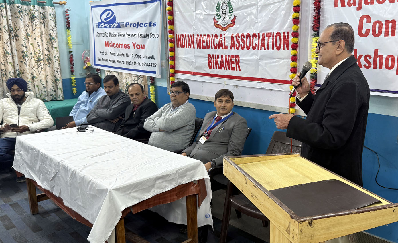 बीकानेर। इण्डियन मेडिकल एसोसियशन एवम् मेडिकल प्रेक्टिशनर सोसायटी के संयुक्त तत्वावधान में एक बहुउद््देशीय शिविर का आयोजन बीकानेर लेबोरेटरी में किया गया । मुख्य अतिथि चिकित्सा एवं स्वास्थ्य विभाग के जोइन्ट डायरेक्टर डॉ. देवेन्द्र चौधरी थे । विशिष्ट अतिथि उपनिदेशक डॉ. राहुल हर्ष एवं राजस्थान प्रोल्यूशन बोर्ड के रीजनल आफिसर आर. के. मीणा थे । कार्यक्रम की अध्यक्षता बीकानेर के मुख्य चिकित्सा एवं स्वास्थ्य अधिकारी डॉ. राजेश गुप्ता ने की। डॉ. नवल गुप्ता विषय विशेषज्ञ के रूप में उपस्थित रहे । बीकानेर एवं आस-पास के तहसीलो में स्थित चिकित्सालय, क्लिनिक एवं पैथोलोजी लेब के संचालक अपने स्टाफ के साथ उपस्थित रहे।