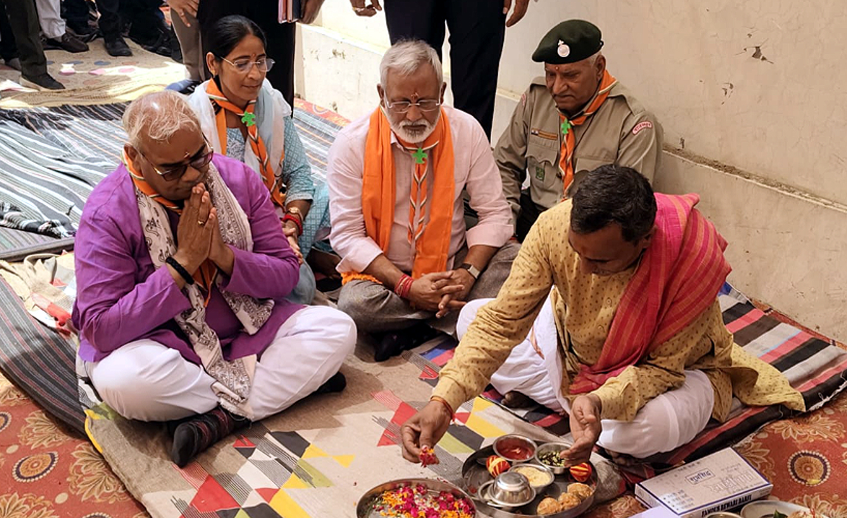 मंत्री श्री मदन दिलावर का जिला मुख्यालय पहुंचने पर श्रीगंगानगर विधायक और जिलाध्यक्ष श्री जयदीप बिहाणी, राज्य संगठन आयुक्त श्री रिपुदमन सिंह गिल और सहायक राज्य संगठन आयुक्त श्री साहिल यादव के नेतृत्व में राजस्थानी पगड़ी व साफा पहनाकर स्वागत किया गया। मंत्री श्री दिलावर, श्री बिहाणी और श्रीमती कविता द्वारा हॉल निर्माण कार्य का भूमि पूजन किया गया।