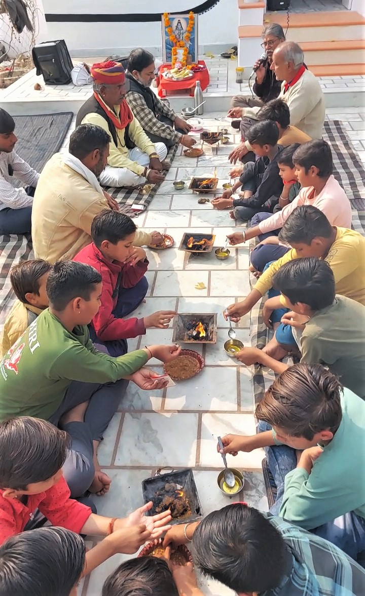 बीकानेर। स्व. श्रीमती शशिबाला मित्तल धर्मपत्नी स्व. श्री त्रिलोकीनाथ मित्तल की 28वीं पुण्यतिथि पर उनकी पावन स्मृति में नखत बन्ना मन्दिर परिसर, बच्छासर में स्कूली विद्यार्थियों के साथ सामूहिक श्रीहनुमान चालीसा पाठ एवं हवन (अग्नि पाठ) का आयोजन किया गया तथा छात्रों को प्रसाद तथा स्टेशनरी वितरित की गई। इस अवसर पर श्री हनुमान जी के चरित्र और हनुमान चालीसा के महत्व के बारे में विद्यार्थियों के बताते हुए श्रीमती शशिबाला मित्तल स्मृति चेरिटेबल ट्रस्ट के संस्थापक ट्रस्टी विवेक मित्तल ने कहा कि वर्तमान में हमें जितनी भौतिक सुख-सुविधाओं की आवश्यकता है उससे ज्यादा जरूरी है स्वस्थ तन और स्वस्थ मन की। जैसे जब हमारे शरीर के किसी भाग पर चोट लगती है तो चोट को ठीक करने के लिए दवाई का सहारा लेते हैं ठीक उसी प्रकार आन्तरिक दुःख या पीड़ा को दूर करने के लिए नामजप या प्रभु का सहारा लेना चाहिए। श्री हनुमान चालीसा का पाठ करना और हनुमानजी के नाता जोड़ना इसका सबसे सरल उपाय है। आज हम सभी को विशेषकर छात्रों और युवाओं को श्री हनुमानजी के जीवन से प्रेरणा लेने की आवश्यकता है। श्री हनुमानजी ने संकट के समय श्रीरामचन्द्र जी के समस्त कार्य अपने बल और बुद्धि के उपयोग से निर्विघ्न पूरे किये उसी प्रकार छात्र भी जीवन में आने वाली कठिनाईयों का सामना सुझबुझ और धैर्य के साथ कर सकते हैं। श्री हनुमान चालीसा का नियमित पाठ व हवन हमारे जीवन में सकारात्मक ऊर्जा का संचार करता है। वरिष्ठ साधक रमेश जोशी ने कहा कि हनुमान चालीसा के प्रत्येक शब्द में मंत्रात्मक शक्ति है इसका पाठ करने से हमें बल, बुद्धि और विद्या की प्राप्ति में सरलता होती है। राजीव मित्तल ने कहा कि श्री हनुमान हमें अपने प्रभु से निःस्वार्थ प्रेम और अनन्य भक्ति करना सीखाते हैं और प्रभु से जुड़ने का सबसे सरल उपाय है श्री हनुमान चालीसा का पाठ। इस अवसर पर पूजारी मदन सिंह, राजीवन मित्तल, रमेश जोशी, रणवीर सिंह, ओम सिंह, मनोहर सिंह, विरेन्द्र सिंह, मदन भोपजी, रामगिरि, भगवान गिरि, धीरजगिरि, सवाईगिरि आदि अनेक भक्तजन उपस्थित थे।