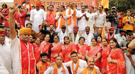 बीकानेर। पूर्व यूआईटी चैयरमेन महावीर रांका द्वारा केईएम रोड प्रेमजी प्वाइंट पर धर्मयात्रा का पुष्पवर्षा कर स्वागत किया गया। भाजपा नेता महावीर रांका ने कहा कि सनातन धर्म सिर्फ आस्था नहीं है, यह भारत की आत्मा है। भारतीय संस्कृति और परम्पराओं को निरंतर आगे बढ़ाने के उद्देश्य से धर्मयात्रा का स्वरूप भी विराट होता जा रहा है। लाखों लोगों का धर्मयात्रा में शामिल होना और जागरुकता की पहचान है। पवन महनोत ने बताया कि खाजूवाला विधायक डॉ. विश्वनाथ मेघवाल, भाजपा देहात जिलाध्यक्ष श्याम पंचारिया, भाजपा नेता रविशेखर मेघवाल, चम्पालाल गेदर ने धर्मयात्रा में शामिल संत-महात्माओं, सजीव झांकियों तथा जन-जन पर पुष्पवर्षा से स्वागत तथा जयश्रीराम के उद्घोष से उत्साह का संचार किया।  इस दौरान युधिष्ठर सिंह भाटी, लालजी गुरुजी, बलवीर सिंह भाटी, गौरव चौधरी, एमपी सिंह हाडला, सोनू चढ्ढा, निर्मल गहलोत, विकास महनोत, अशोक रामपुरिया, शिवलाल तेजी, शक्ति सिंह, महेन्द्र सिंह राठौड़, विनोद मोदी, आनन्द शर्मा, नरपत पुरोहित, जेठमल सेठिया, प्रणव भोजक, रमेश भाटी, गौरीशंकर देवड़ा, ओम राजपुरोहित, लक्की पंवार, पंकज गहलोत, ललित भान, अंकित तंवर, शंभु गहलोत, नरेन्द्र चंचल, शंकर सिंह राजपुरोहित, नरपत सिंह भाटी, घनश्याम जाजड़ा, विशाल चौपड़ा, नरेन्द्र भादाणी, सुनील मिढ्ढा, महेन्द्र सुगंध, राजेन्द्र व्यास, अमर खंडेलवाल, अमनदीप बिश्नोई, ओम नायक आदि की सहभागिता रही।