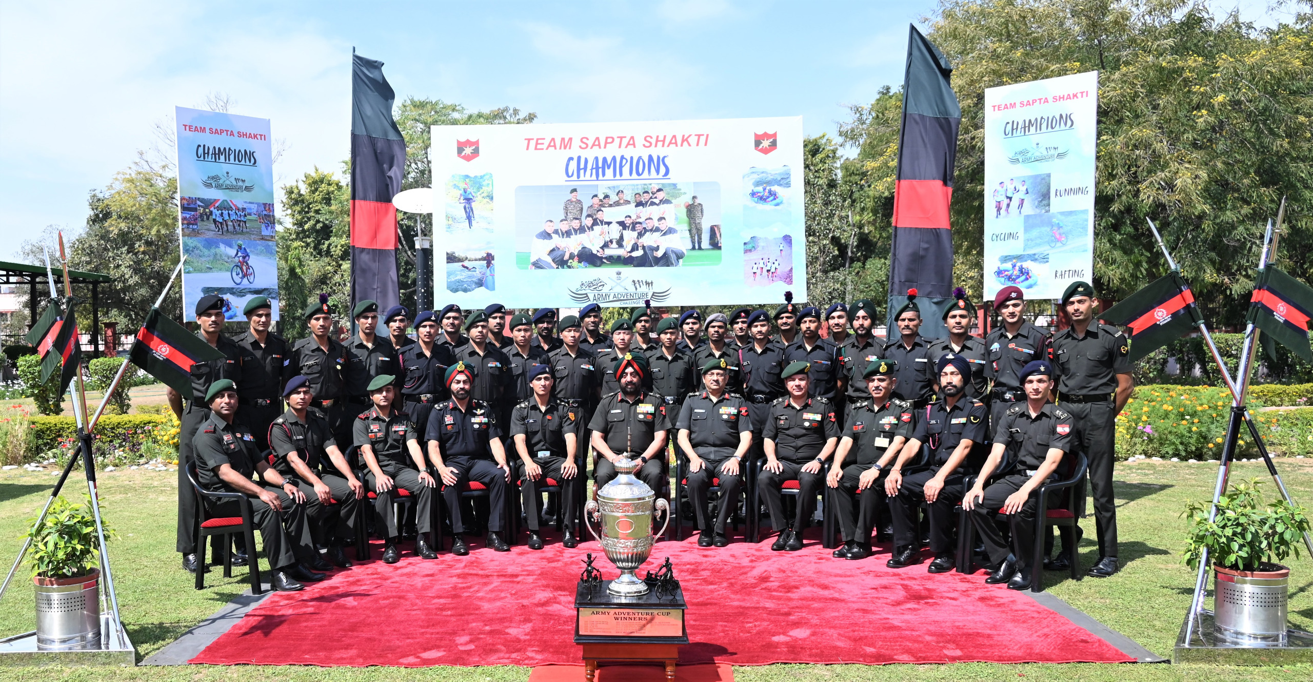 जयपुर। सप्त शक्ति कमान की एडवेन्चर टीम ने इतिहास में स्वर्णिम अक्षरों में अपना नाम अंकित करते हुए पहली बार प्रतिष्ठित आर्मी एडवेन्चर चैलेंज कप ट्रॉफी 2024-25 को अपने नाम किया। आर्मी एडवेन्चर चैलेंज कप एक अत्यंत कठिन ट्रायथलॉन प्रतियोगिता है जिसे इस वर्ष अरुणाचल प्रदेश के दुर्गम यिंग्कियोंग क्षेत्र में आयोजित किया गया। इस प्रतियोगिता में 12 किमी हिल रनिंग, 20 किमी माउंटेन टेरेन बाइकिंग और 8 किमी व्हाइट वॉटर राफ्टिंग शामिल थी, जो शारिरिक और मानसिक सहनशक्ति की पराकाष्ठा की परीक्षा लेती है। सभी कठिनाइयों को मात देते हुए टीम सप्त शक्ति ने न्यूनतम समय में यह चुनौतीपूर्ण प्रतियोगिता पूरी की और सर्वश्रेष्ठ टीम के रूप में विजयी हुई। इसके साथ ही टीम के चार सदस्यों ने व्यक्तिगत पुरस्कार भी अपने नाम किया जिसमे तीन स्वर्ण और एक कांस्य पदक शामिल है।