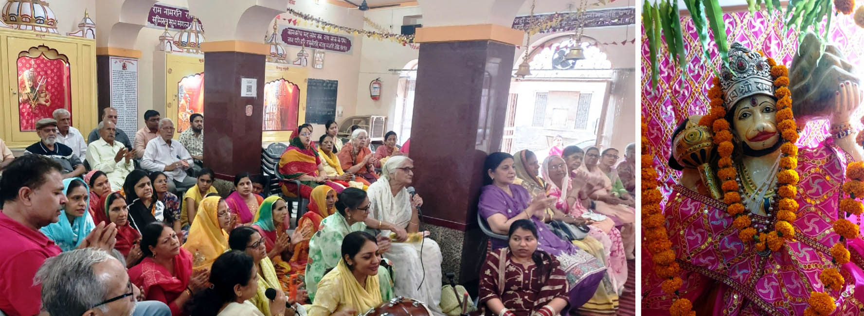 बीकानेर। जयनारायण व्यास नगर स्थित श्री सर्वसिद्धेश्वर महादेव मंदिर में हनुमान जन्मोत्सव के अवसर पर श्रद्धा और भक्ति का विशेष वातावरण देखने को मिला। इस अवसर पर साधकों ने विधि-विधान से गदा पूजन किया तथा श्रीराम नाम संकीर्तन एवं हनुमान चालीसा का सामूहिक पाठ किया। कार्यक्रम के दौरान महिलाओं ने भजन गाकर हनुमान जी की आराधना की, जिससे पूरा मंदिर परिसर भक्तिमय माहौल से सराबोर हो गया। इस मौके पर नारायण सिंह खीची, सुरेश कुमार मित्तल, नलिन सारवाल, हरनारायण खत्री, श्रीमती दया सारवाल, मंजू लता शर्मा, मधुरिमा सिंह, नरेश गुरेजा, रवि राजवंशी, दिनेश मित्तल, गायत्री शर्मा, यशोदा, रजनी सोनी, रानी हर्ष, संजू दुआ, स्वीटी अरोड़ा, सोहनलाल सोनी, कमलेश मारू, घनश्याम सिंह, विवेक मित्तल सहित अनेक हनुमान भक्त उपस्थित रहे।