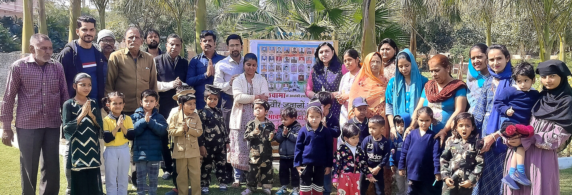 बीकानेर। ब्लू मून चैरिटेबल स्कूल और हरि प्यारी सेवा समिति के संयुक्त तत्वाधान में पुलवामा हमले में शहीद हुए वीर जवानों के प्रति श्रद्धांजलि सभा आयोजित की गई। इस दौरान उपस्थित सभी जनों ने देश की सुरक्षा के लिए बलिदान देने वाले सैनिकों को याद कर दो मिनट का मौन रखा। डॉ. अर्पिता गुप्ता ने विद्यार्थियों को शहीदों के बलिदान और समर्पण की महत्ता को समझाया। युवाओं से देश के प्रति अपने कर्तव्यों को निभाने की अपील की। इस मौके पर नरेश खत्री, विजय कपूर, स्नेहा शर्मा, प्रिया भार्गव, निशु लिम्बा,कौशलेश गोस्वामी, किशन लाल, कांता खत्री, परवीन बानो, पुष्पा सोनी, मोहित शर्मा, शिखा चौधरी, रोहित शर्मा, मुकेश पंडित, ओम प्रकाश बिनावर, लीलावती बिनावर, नरेंद्र सिंह, अनु जांगिड़, कमल सांखला, शिवानी भावना, सिंह आदि उपस्थित थे।