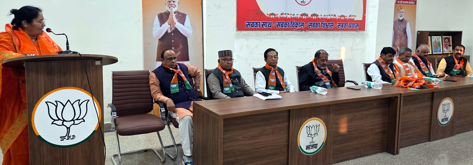 बीकानेर। भारतीय जनता पार्टी संभाग मुख्यालय में सोमवार को शहर जिलाध्यक्ष सुमन छाजेड़ की अध्यक्षता में पहली संगठनात्मक बैठक रखी गई। इस अवसर पर समस्त पदाधिकारियों ने छाजेड़ का स्वागत और सम्मान किया। नवनिर्वाचित जिलाध्यक्ष सुमन छाजेड़ ने पहली संगठनात्मक बैठक में अपने निर्वाचन पर प्रदेश नेतृत्व, जिला संगठन, जनप्रतिनिधियों का आभार व्यक्त किया और अपने संबोधन में कहा बीकानेर शहर की प्रथम महिला जिलाध्यक्ष का दायित्व आप सब के आशीर्वाद से मिला है हम सब प्रदेश नेतृत्व द्वारा दी गई जिम्मेदारी को ओर संगठन के कार्य को पूरी लग्न और ईमानदारी के करेंगे। छाजेड़ ने सभी पदाधिकारियों, मंडल अध्यक्षों, पार्षदों, कार्यकर्ता से कहा केंद्र की नरेंद्र मोदी की सरकार प्रदेश की भजनलाल सरकार की उपलब्धियां आमजन के बीच लेकर जाए आमजन को केंद्र और प्रदेश सरकार की सरकारी योजनाओं का लाभ दिलवाना हमारा दायित्व है छाजेड़ ने समस्त मंडल अध्यक्षों को जल्द से जल्द कार्यकारणी बनाने के निर्देश दिए है।