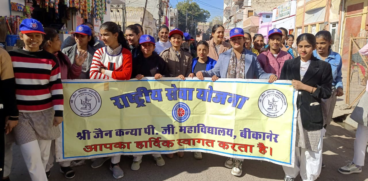 बीकानेर। श्री जैन कन्या पी जी महाविद्यालय बीकानेर में राष्ट्रीय सेवा योजना के सात दिवसीय शिविर के तीसरे दिन प्रथम सत्र में स्वमसेविकाओं ने योगाभ्यास किया जय गणेश ऑर्गनाइजर फाउंडेशन की योग गुरु प्रियदर्शिनी शेखावत ने योग के विभिन्न आसनों का अभ्यास करवाया । इसके बाद दूसरे सत्र में राष्ट्रीय मतदान दिवस के रूप संगोष्ठी रखी गई जिसमें प्रो विशाल सोलंकी ने मतदान का महत्व ओर अधिक से अधिक मतदान करने ओर अपना मतदान पहचान पत्र बनवाने का आहवान किया प्राचार्य डॉ संध्या सक्सेना ने इनको स्मृति चिन्ह भेंट कर आभार व्यक्त किया। शिविर के तृतीय सत्र में सड़क सुरक्षा के तहत कार्यक्रम प्रभारी डॉ राजेंद्र जोशी व प्रो अरुणा त्यागी तथा अरुण सक्सेना के नेतृत्व में रैली निकाली गई इस दौरान बीकानेर स्टेशन व गंगाशहर रोड पर हेलमेट पहने वाले दुपहिया वाहन चालकों को सम्मान स्वरूप डेयरी मिल्क चॉकलेट देकर आभार व्यक्त किया और जिन चालकों ने हेलमेट नहीं पहना था उनको समझाई ओर आगे से अपने ओर अपने परिवार हित में हेलमेट पहनने का सविनय अनुरोध के साथ उनको भी चॉकलेट वितरण कर सभी को सड़क सुरक्षा के लिए अभिप्रेरित करने का प्रयास किया गया।