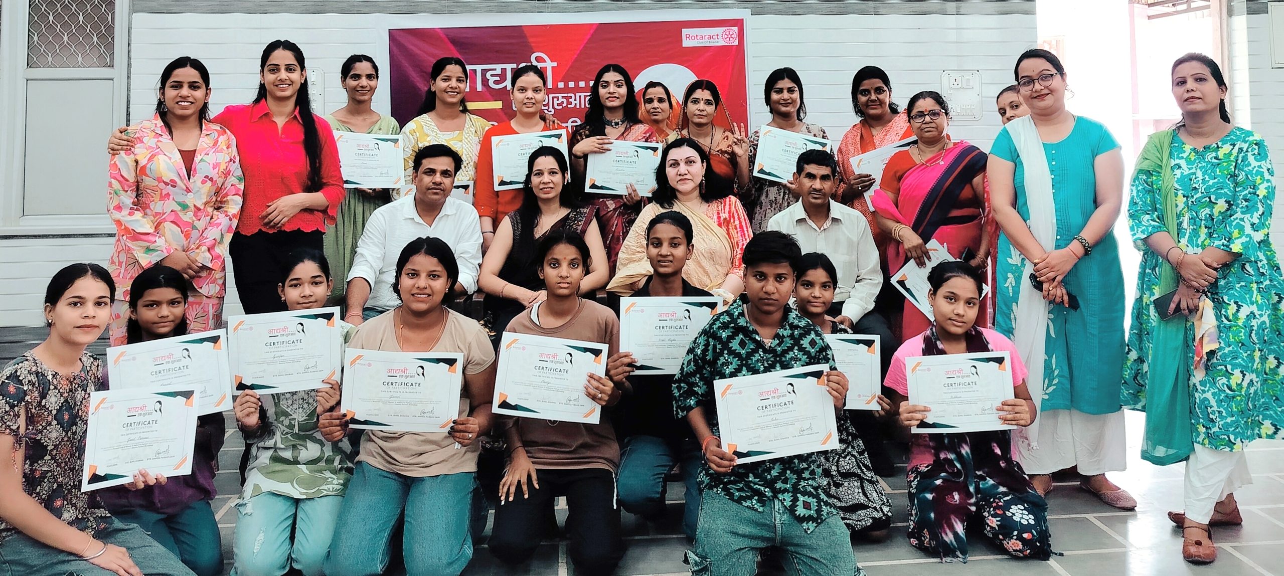 बीकानेर। वाल्मीकि विनोबा बस्ती में डॉ. अर्पिता गुप्ता के नेतृत्व में रोट्रेक्ट क्लब के सहयोग से तीन दिवसीय महिला स्वरोजगार कार्यशाला आयोजित की गई। कार्यशाला में प्रशिक्षिका विजयलक्ष्मी द्वारा महिलाओं को ब्यूटी पार्लर के विभिन्न पहलुओं जैसे कि फेशियल, हेयर स्टाइल, आईब्रो और ब्लीच, हेयर कट, हेयर स्टाइल आदि के बारे में सिखाया गया। सभी प्रतिभागियों को सर्टिफिकेट दिया गया।