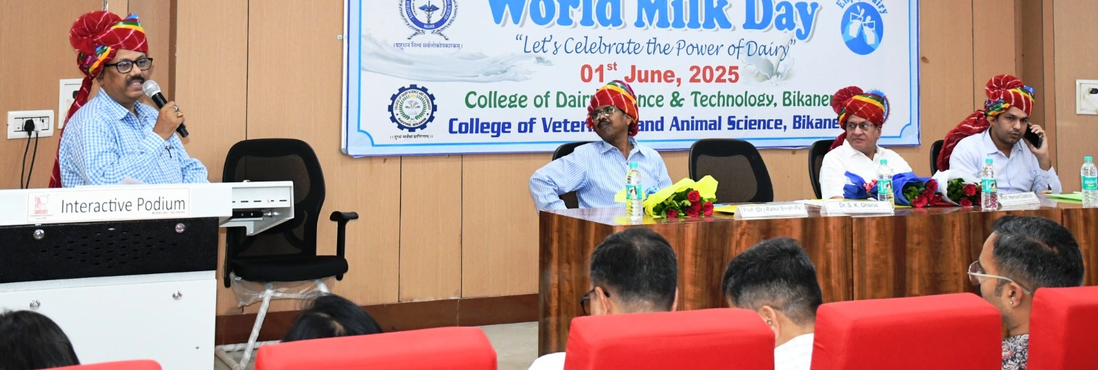 बीकानेर। वेटरनरी विश्वविद्यालय के संघटक पशुचिकित्सा एवं पशु विज्ञान महाविद्यालय, बीकानेर एवं डेयरी विज्ञान एवं प्रौद्योगिकी महाविद्यालय (बीछवाल), बीकानेर के संयुक्त तत्वावधान में विश्व दुग्ध दिवस “आइए डेयरी की शक्ति का उत्सव मनाएं” थीम पर शनिवार को आयोजन किया गया। इस अवसर पर विश्वविद्यालय में विभिन्न कार्यक्रमों का आयोजन किया गया। विश्वविद्यालय के कुलगुरू आचार्य मनोज दीक्षित ने विश्वविद्यालय के सभी अधिकारियों, कर्मचारियों एवं विद्यार्थियों को विश्व दुग्ध दिवस के अवसर पर शुभकामनाएं प्रेषित की। प्रति कुलपति प्रो. हेमन्त दाधीच ने संबोधित करते हुए कहा कि राजस्थान दूध उत्पादन में देश का अग्रणी राज्य है। राजस्थान के दुग्ध उत्पाद राजस्थान ही नहीं अपितु विदेशों में भी निर्यात किया जा रहा है। दुग्ध एवं दुग्ध उत्पादों में मिलावट एक गंभीर समस्या है, जिसके निराकरण हेतु जागरूकता आवश्यक है। कार्यक्रम के विशिष्ट अतिथि प्रधान वैज्ञानिक एवं पूर्व निदेशक राष्ट्रीय उष्ट्र अनुसंधान केन्द्र, बीकानेर डॉ. ए.के. घुरई ने ऊंट के दूध की महत्ता पर प्रकाश डाला और बताया कि ऊंट का दूध मधुमेह, उच्च रक्तचाप एवं अन्य व्याधियों के उपचार में सहायक है। विशिष्ट अतिथि मैनेजर, प्लांट उरमूल डेयरी इंजी. ओम प्रकाश भांभू ने राज्य सरकार की विभिन्न दुग्ध संबंधित परियोजनाओं के बारे में विस्तार से बताते हुए कहा कि उरमूल डेयरी राष्ट्रीय उष्ट्र अनुसंधान के साथ मिलकर ऊंट के दूध एवं गुणवत्ता युक्त दुग्ध एवं दुग्ध उत्पाद को आम जन के लिए उपलब्ध करवाने के लिए प्रयासरत है। कार्यक्रम के प्रारंभ में अधिष्ठाता, डेयरी विज्ञान एवं प्रौद्योगिकी महाविद्यालय, बीकानेर प्रो. राहुल सिंह पाल ने सभी का स्वागत करते हुए कार्यक्रम की रूपरेखा बताई एवं दुग्ध को संपूर्ण आहार बताते हुए रोजमर्रा के जीवन में इसकी उपयोगिता एवं आवश्यकता के बारे में बताया। कार्यक्रम के दौरान विश्वविद्यालय के डीन डायरेक्टर सहित शिक्षक, विद्यार्थी मौजूद रहे। कार्यक्रम के अंत में डॉ. रीटा ने धन्यवाद ज्ञापित किया। कार्यक्रम के दौरान मंच संचालन डॉ. सोनिया ने किया।