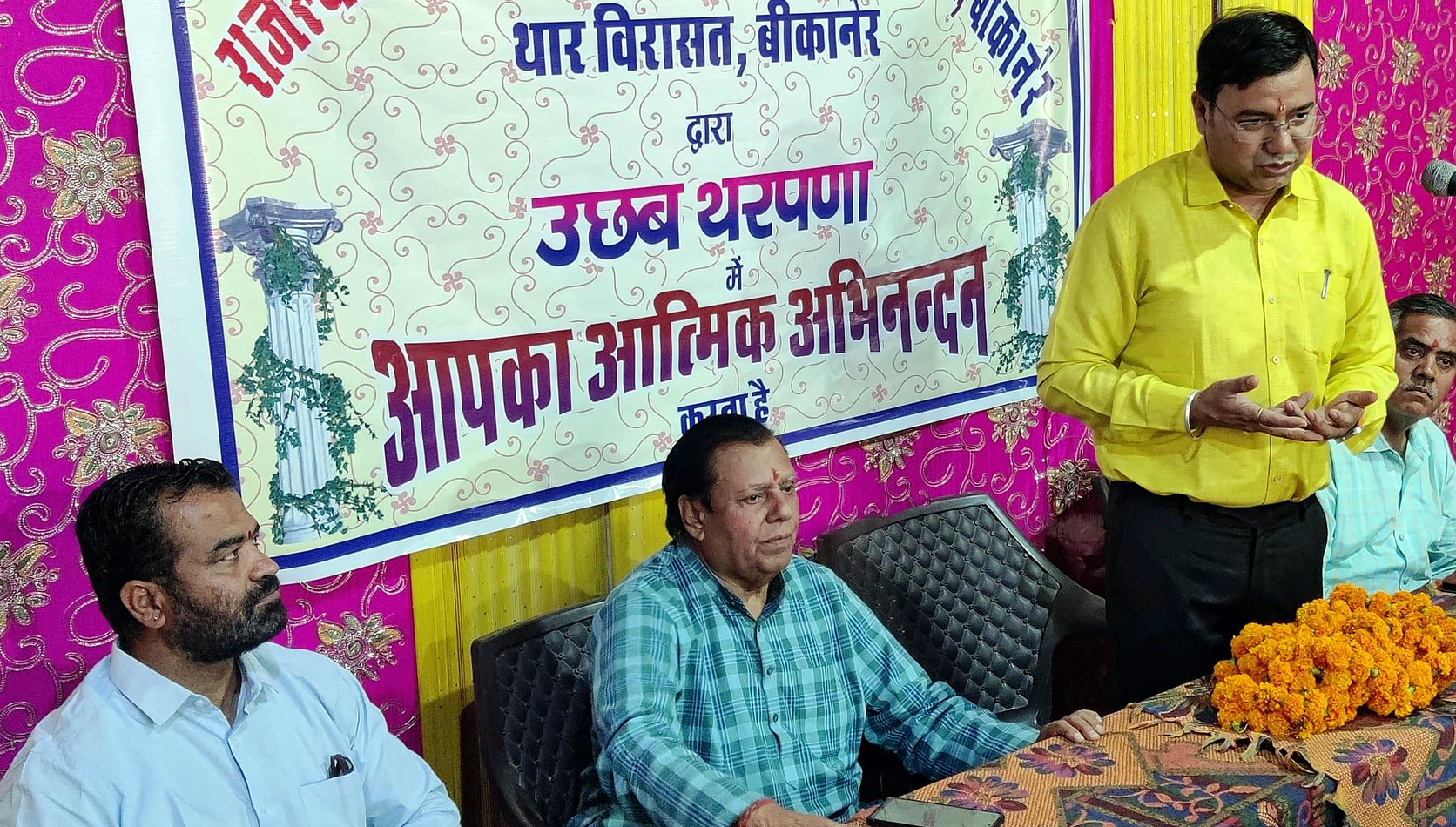 उछब थरपणा समारोह के संयोजक वरिष्ठ संस्कृतिकर्मी एवं शिक्षाविद् राजेश रंगा ने कहा कि हमारी कलाएं और लोककलाएं पूरे देश में विशेष पहचान रखती है। जिसका अनुपम उदाहरण प्रदर्शनी में लगी सैकड़ों कलाकृतियां हैं। दो दिवसीय इस महत्वपूर्ण ‘युवा कला प्रदर्शनी’ के 35 कलाकारो का संस्थाओं की ओर से कल समारोह के सातवे दिन समापन अवसर पर सम्मान किया जाएगा।